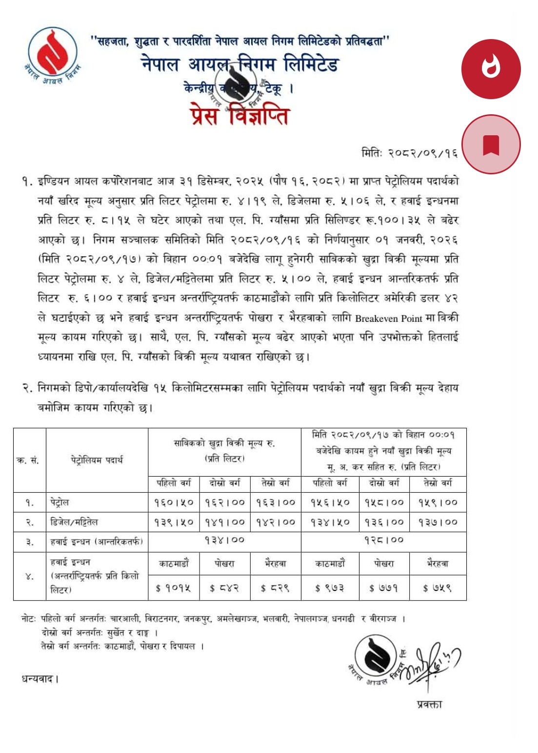 पेट्रोलियम पदार्थको मूल्य घट्यो